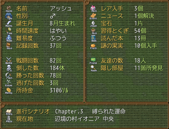 読んだ本の数や、仲間にしたキャラの数などなど。