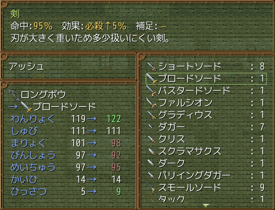 魔力を上げる武器や守備をあげる武器など変わったものも多め。