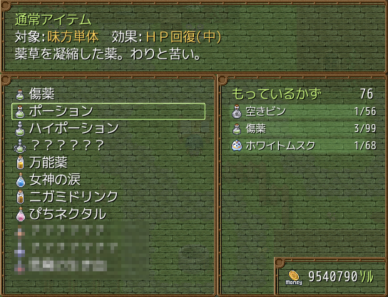作ることができる回復アイテムに
